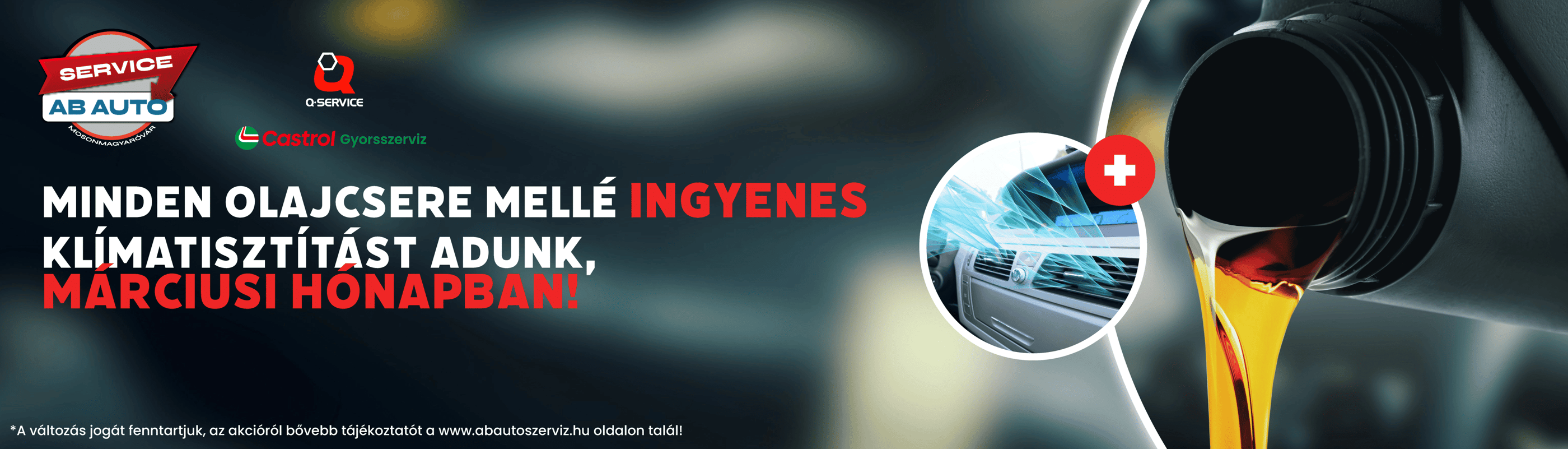 Az akció 2026. március 2–31. között érvényes. A kedvezmény kizárólag olajcsere szolgáltatás mellé biztosított, Az akció személy- és kisteherautókra érvényes 3,5 tonnáig.